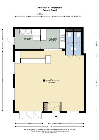 Begane grond: ca. 81 m² BVO (bruto verhuurbaar vloeroppervlak) VVO is ca. 72 m², als volgt verdeeld: