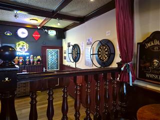 Binnen vind je twee dartbanen waar vaste gasten of dartteams zich helemaal kunnen uitleven. Er is geen terras, maar binnen is het sfeervol en knus, met de uitstraling van een ouderwetse bruine kroeg waar iedereen zich meteen thuis voelt. Achter de bar ligt een kleine maar complete keuken, perfect om een lekkere barhap of een eenvoudig gerecht te serveren.