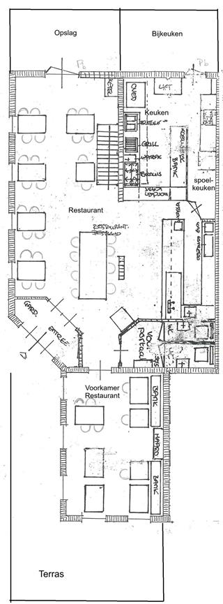Het betreft een prachtig mooie uitgaansgelegenheid, bestaande uit restaurant met bar en voorkamer, terras, centrale keuken, spoelkeuken, afgesloten restaurant met bar op de 1e verdieping en opslagruimte op de begane grond.