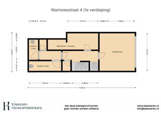 De begane grond heeft een totale oppervlakte van ca. 52 m², waarvan ca. 35 m² in gebruik is als verkoopvloer inclusief de bar en ca. 8,5 m² als keuken. De eerste verdieping bedraagt ca. 42 m², en de tweede verdieping ca. 35 m².