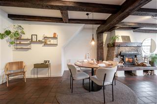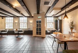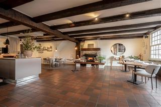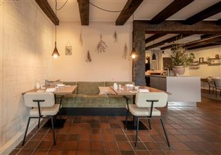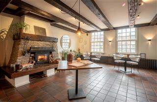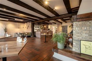 Dit restaurant ligt direct aan de Hoofdstraat en heeft een vriendelijke uitstraling, met kleine ruitjes in de ramen en een sierlijke dakkapel. Het terras aan de voorzijde is ongeveer 60 vierkante meter groot. De voordeur van het restaurant zit in het midden van het pand. Wie binnenkomt, stapt direct het mooie, intieme restaurant binnen. Hier valt gelijk de sfeervolle, authentieke schouw met inzethaard op. Momenteel staan hier ongeveer tien tafels, maar deze opzet is opvallend ruim, zodat meer tafels zeker mogelijk is. De bar bevindt zich vrijwel in het midden van de zaak en is voorzien van onder andere een drankenkoeling, wasbak, lades en opbergruimtes voor glaswerk en bestek. Vanaf de bar is er zicht op de open keuken. Achter in het restaurant bevindt zich een grote eettafel en daarachter de aparte heren- en damestoiletten en een vestiaire.