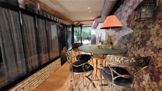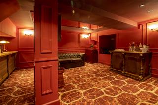 De begane grond bestaat uit meerdere ruimtes, die onderling goed op elkaar zijn afgestemd: een grote bar met barstoelen en diverse knusse zitjes, afgescheiden vergader units, een grote tuinkamer en een “mancave”, alles zeer kleurrijk ingericht met mooie decoratie aan de wanden. In het souterrain is nog een ruime hal waarin zich ook de toiletten en opslag bevinden en nog een extra bedrijfsruimte van ca 18m2. Momenteel is er geen (ingerichte) keuken, deze kan wel eenvoudig gerealiseerd worden.