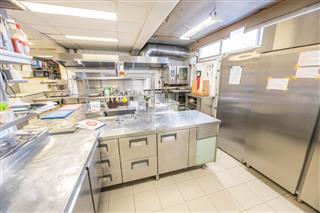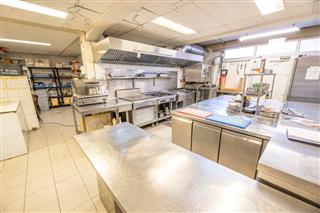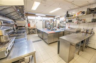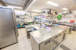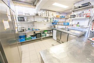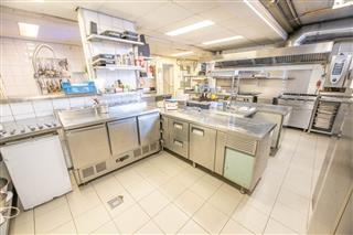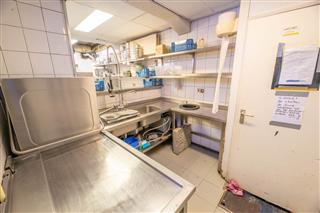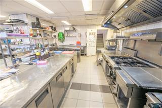 De ruim opgezette en compleet ingerichte keuken bevindt zich in het souterrain. Daar bevinden zich ook de toiletgroep en magazijnen voor de opslag. Het magazijn heeft een eigen leveranciersingang, hetgeen ook handig is bij een (aanvullend) bezorgconcept.