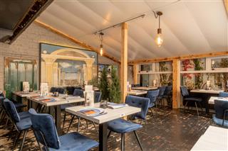 Binnen is het interieur in 2020 in samenspraak met een binnenhuisarchitect volledig vernieuwd. De kleuren blauw, zwart en grijs in combinatie met hout zorgen voor een warme, aangename sfeer. De pilaren versterken het mediterrane karakter van het restaurant, maar deze kunnen vanzelfsprekend eenvoudig vervangen of weggehaald worden, al naar gelang het horecaconcept van de nieuwe eigenaar.