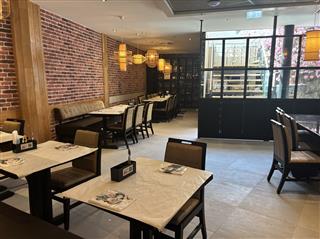 De locatie is in totaal 634m2, de horecaruimte is verdeeld over begane grond 308m2 en eerste verdieping 233m2. Er is een nieuwe serre (ca. 30 m²) in aanbouw. Het terras is ca 134m2.