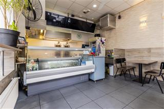 De zaak is intern knus ingericht met ruimte voor circa 10 zitplaatsen binnen, plus nog eens 8 tot 12 buiten op een klein terras bij de gevel. De inrichting is eenvoudig, functioneel en goed onderhouden — geen grote investeringen nodig.