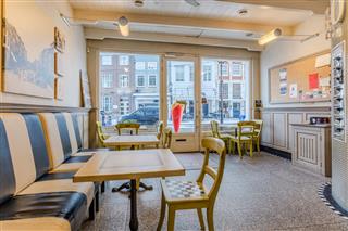 Via de entree komt men in de verkoopruimte met ca. 10 zitplaatsen. Aan de achterzijde van deze verkoopruimte vindt men de bakwand, doorgang naar de keuken en de opgang naar de bedrijfswoning. In de keuken vindt men een gasfornuis, spoeltafel, diverse vrieskasten en een koelcel. Achter deze ruimte is de opslagruimte en personeelstoilet gelegen, tevens vindt men hier een kleine binnenplaats. Aan de voorzijde is een terras met ca. 12 zitplaatsen.