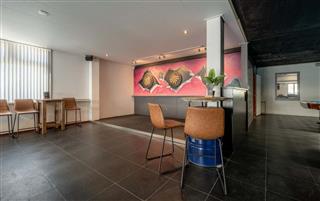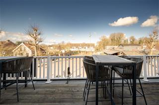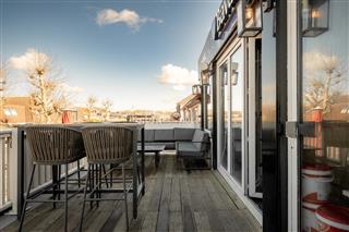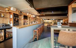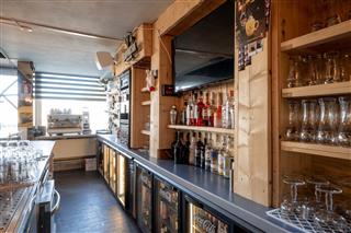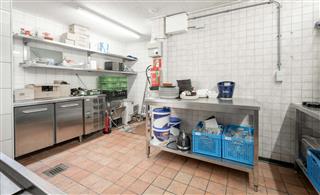 Ga je vanuit de hoofdingang bovenaan de trap rechts, dan kom je in de ruimte die 1 à 2 keer per week gebruikt wordt voor feesten en partijen. Deze kant van de zaak heeft een aparte vergunning voor een restaurantexploitatie. De huidige eigenaren maken daar momenteel geen gebruik van. Hier vind je een flinke bar met onder andere vitrine koelkasten, tapinstallatie met drie aansluitingen, muzieksysteem en een led/discolichtensysteem. De ruimte is recent opgeknapt, maar is, gelet op het huidige gebruik, sober ingericht. Elk feest wordt nu op maat gedecoreerd. Verder is er een keuken, waar onder andere een frituur, koelcel, vriezer, koelbanken en een afwashoek staan. Natuurlijk zijn er aansluitingen voor meer keukenapparatuur. Alle ruimte dus om hier als horecaondernemer je eigen restaurantplannen en -ideeën waar te maken. Daarvoor is zeker nog ruimte in Renesse. Naast de binnenruimte is er tevens een dakterras waar plaats is voor ongeveer 30 gasten.