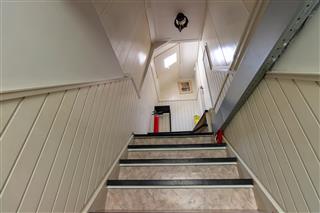 De bovenwoning is te bereiken via een aparte ingang aan de linkerzijden van de cafetaria of binnendoor via het zitgedeelte. De woning is ruim opgezet en is een aantrekkelijke optie voor een ondernemer die boven zijn zaak wil wonen.