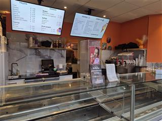 Combinatie van een modern pizzarestaurant en een gevestigde ijssalon met productiekeuken.
