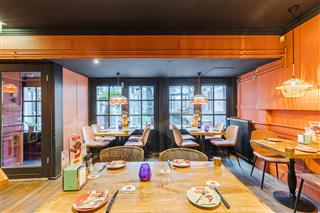 Het pand aan Westzijde 50 beschikt over een heldere, functionele indeling die geschikt is voor diverse commerciële doeleinden. De entree bevindt zich direct aan de Westzijde en biedt toegang tot een representatieve ontvangstruimte met grote raampartijen, waardoor de begane grond opvallend licht en uitnodigend is. Op dit moment bevinden zich hier ca. 35 zitplaatsen