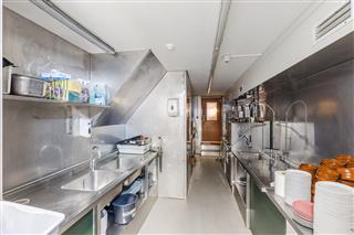 In het midden van het pand bevinden de Keuken, koelcel, evenals sanitaire voorzieningen en een pantry. Hiermee is het pand volledig ingericht voor gebruik als horeca en instapklaar. De indeling biedt flexibiliteit; wanden en ruimten kunnen desgewenst worden aangepast om aan specifieke wensen te voldoen.