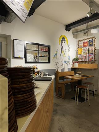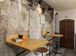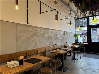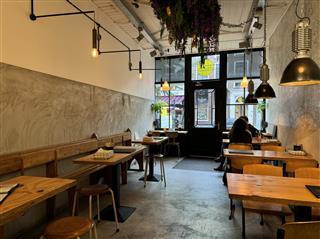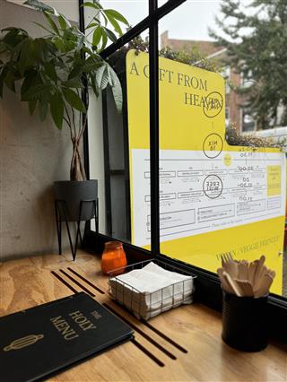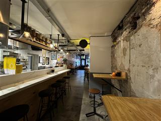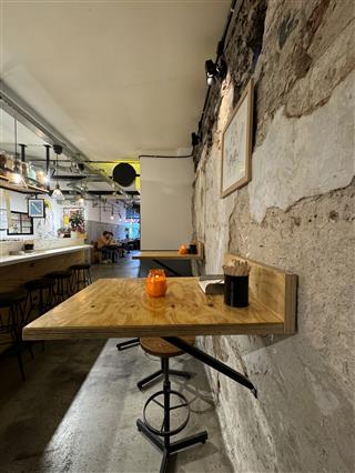Aan de zijkant van het pand bevindt zich een steeg met een aparte ingang naar het afhaal- en bezorggedeelte van Dogma. Dankzij deze indeling ondervinden gasten in het restaurant geen hinder van de afhaal- en bezorgactiviteiten.