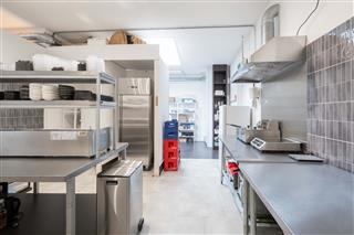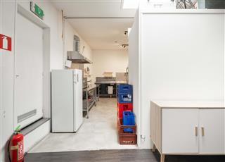 Vanuit de bar kom je in de keuken, die aan de achterzijde van het pand ligt. De keuken is volledig ingericht om de beste sushi te bereiden en ondersteunt een efficiënt werkproces. Zo is er een grote RVS-tafel voor het rollen en snijden van sushi, twee extra RVS-tafels met frituur, grill en bakplaat, een grote koelkast en twee kleine vriezers. Een wasbak voor de afwas en een voorraadgedeelte met wandkast en rekken completeren de ruimte. In deze keuken kunnen zeker drie koks uitstekend uit de voeten. De unieke, eigen sushi-receptuur vormt de basis van het commerciële succes van de sushibar en wordt daarom meegeleverd bij de verkoop. Het slimme en doordachte keukenontwerp draagt bij aan een soepel verloop van de service, zowel bij afhaal en bezorging als bij gasten in het restaurant.
