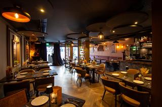 Bij binnenkomst betreedt men direct de centrale restaurant ruimte. Deze royale ruimte herbergt het grootste deel van de zitplaatsen, maar voelt dankzij de slimme indeling en ruime opzet open en