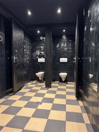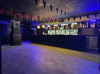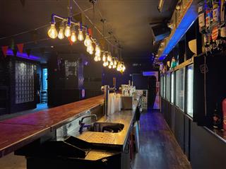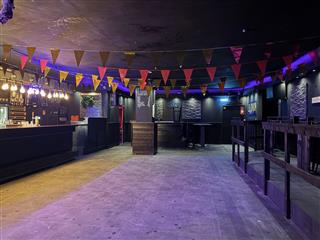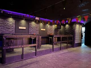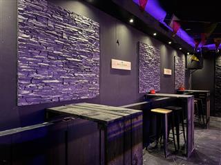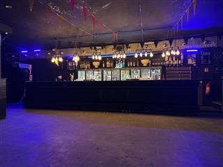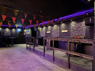 Het café beschikt over een ruime zaal met een indrukwekkende, brede bar die is voorzien van meerdere tappunten voor een hoge handelingssnelheid. Een essentieel technisch kenmerk is het aanwezige box-in-box systeem, waardoor geluidsoverlast naar de omgeving tot een minimum wordt beperkt; een cruciale waarde voor een nachtzaak op deze centrumlocatie.